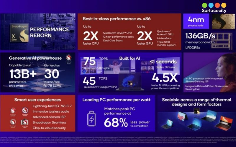 Khi nhắc đến các dòng chip xử lý hiện đại, Snapdragon X từ Qualcomm đang thu hút sự chú ý với những cải tiến đáng kể. Được thiết kế để đáp ứng nhu cầu của các thiết bị công nghệ tiên tiến, Snapdragon X không chỉ cải thiện hiệu suất mà còn mang lại nhiều lợi ích xanh cho môi trường. Hãy cùng SURFACECITY khám phá những điểm khác biệt nổi bật của Snapdragon X so với các dòng chip khác trên thị trường!